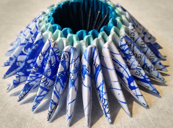 Cada peça de papel é cuidadosamente dobrada e protegida com várias camadas finas de verniz. Conseguimos, assim, assegurar uma maior resistência e durabilidade dos objetos.